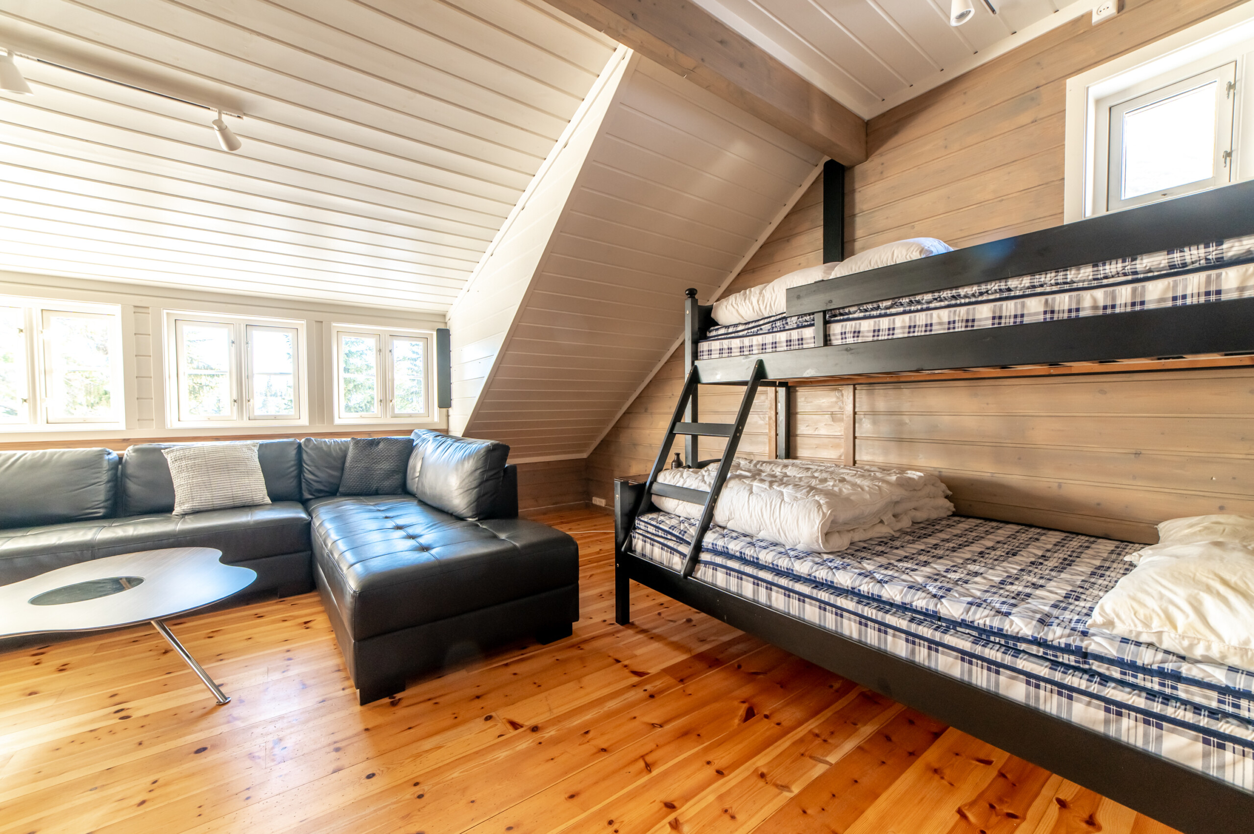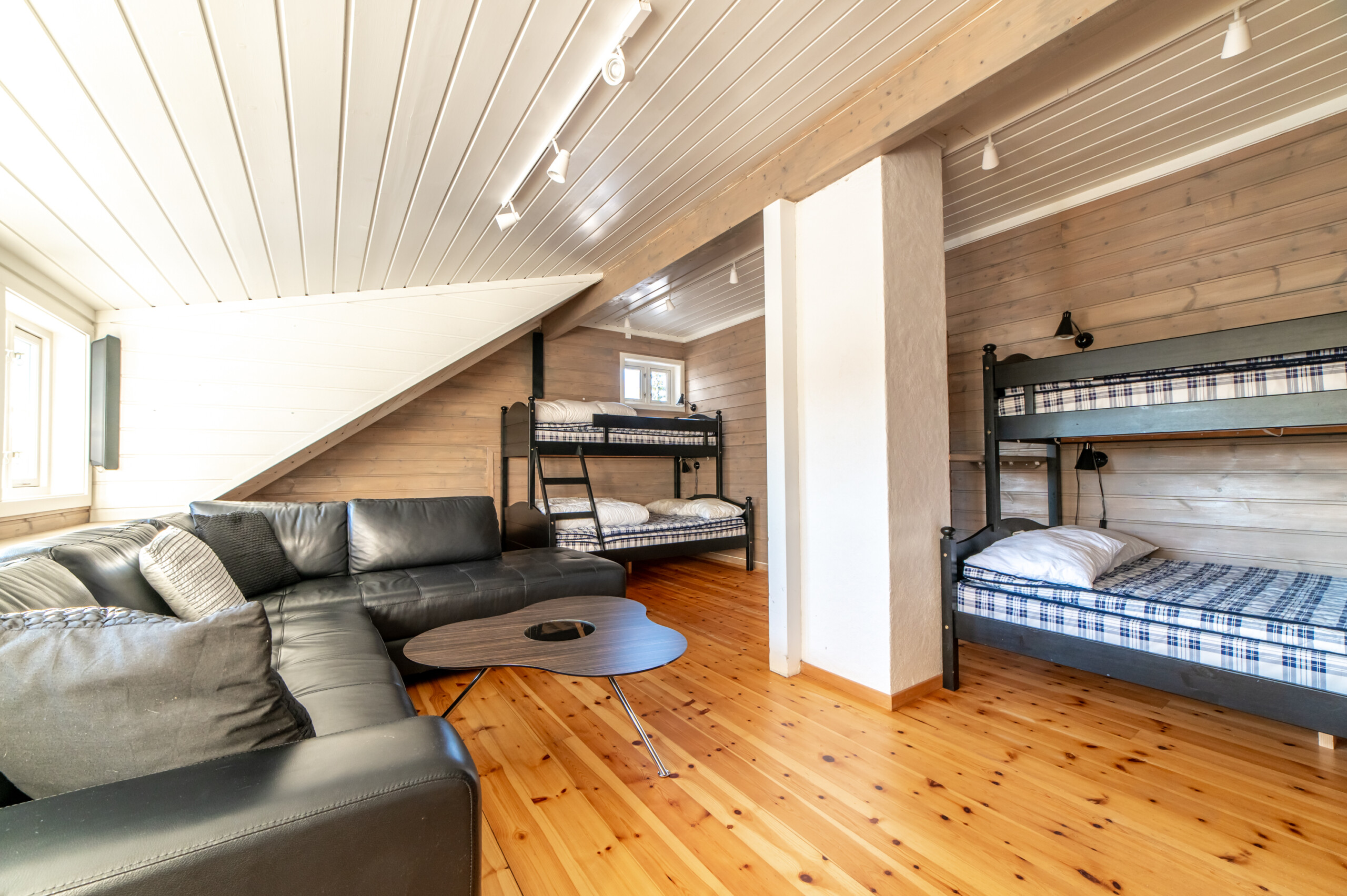 Totalt 11 sengeplasser fordelt på 4 rom; tre soverom og en tv-stue med sengeplasser.