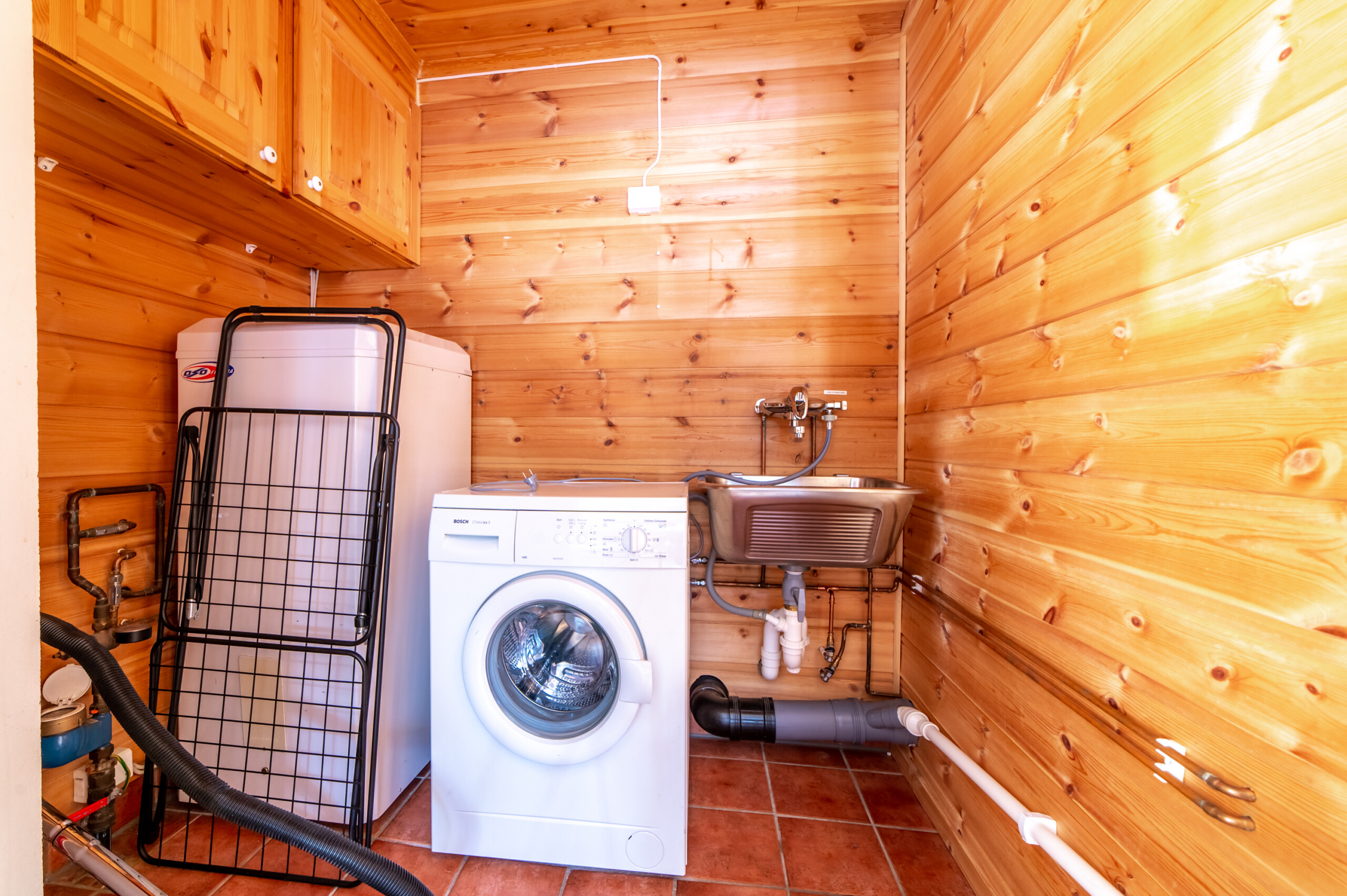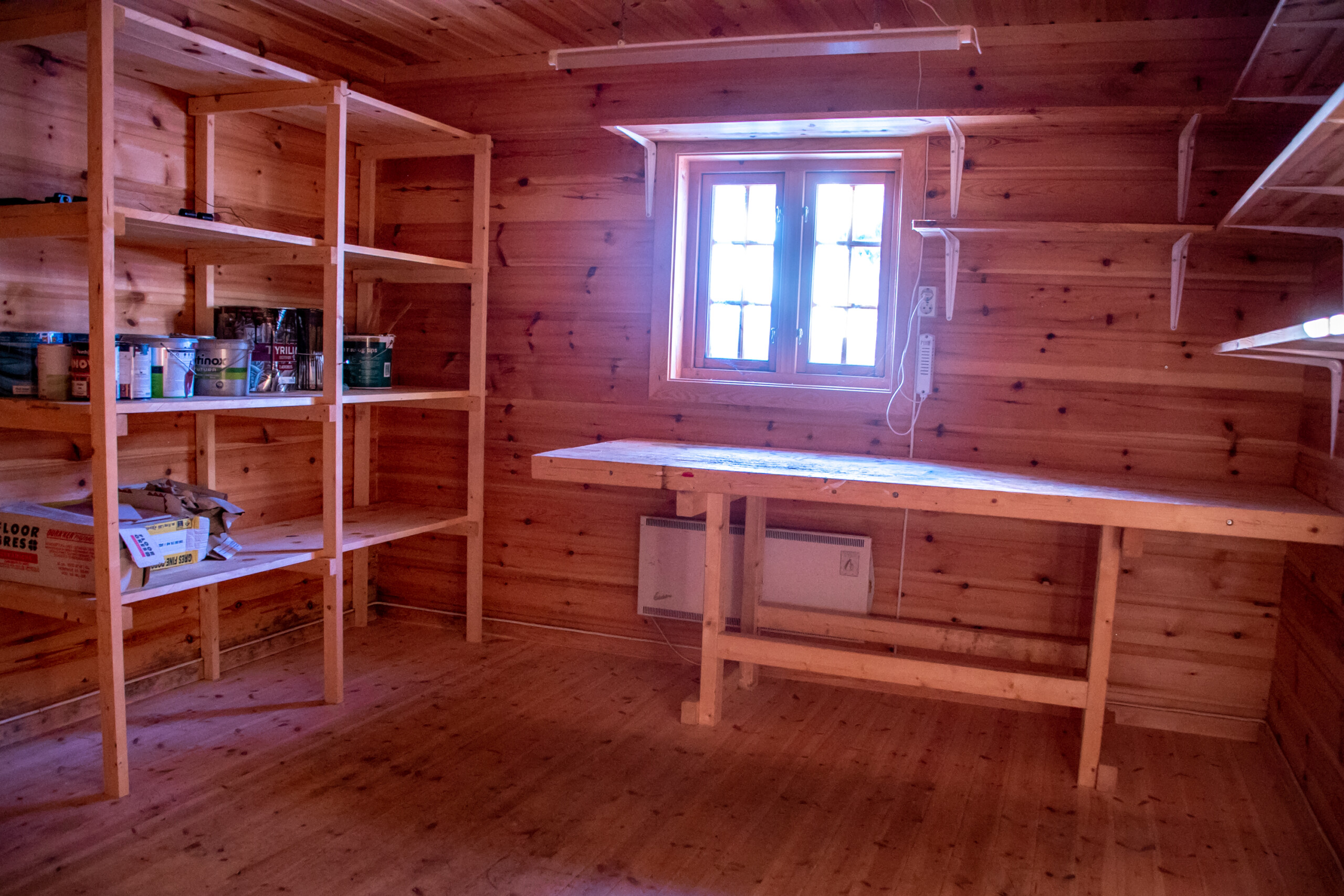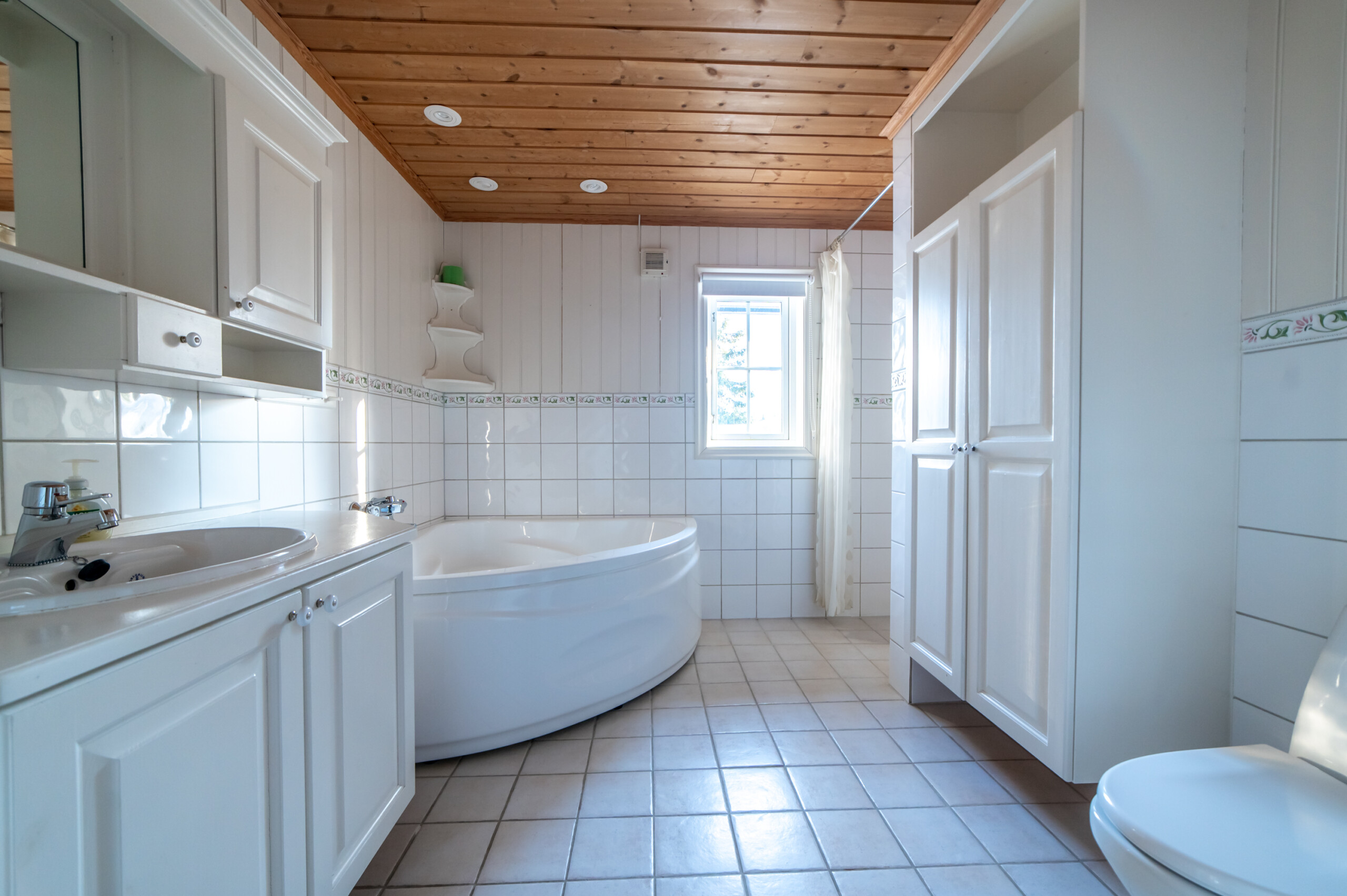 Hytta har to bad og vaskerom, og et uthus med to rom for oppbevaring og garasje.