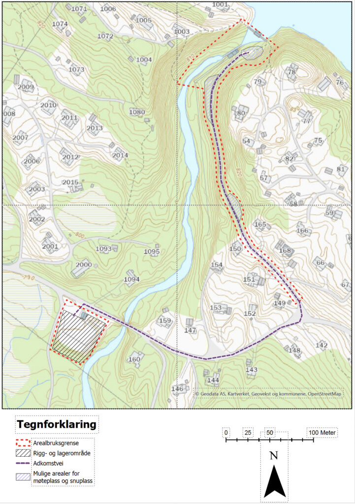 I forbindelse med prosjektet må veien opp til dammen (ca. 380 meter) oppgraderes med en bredde på inntil 3,5 – 4 meter.