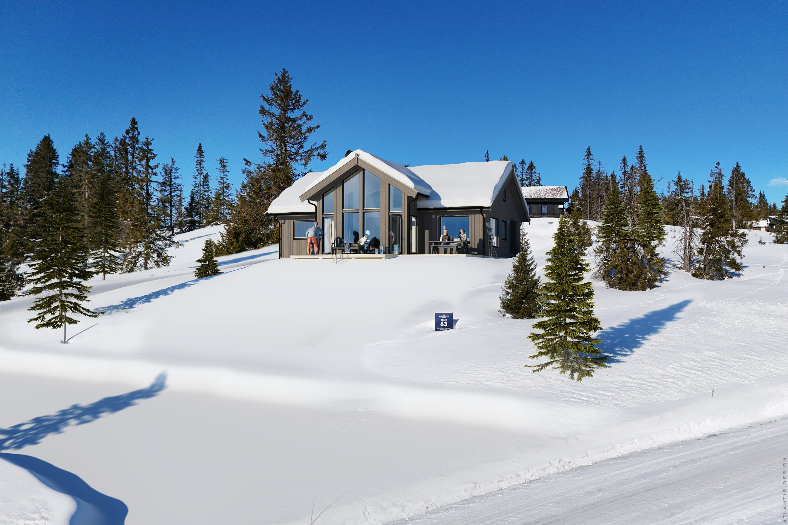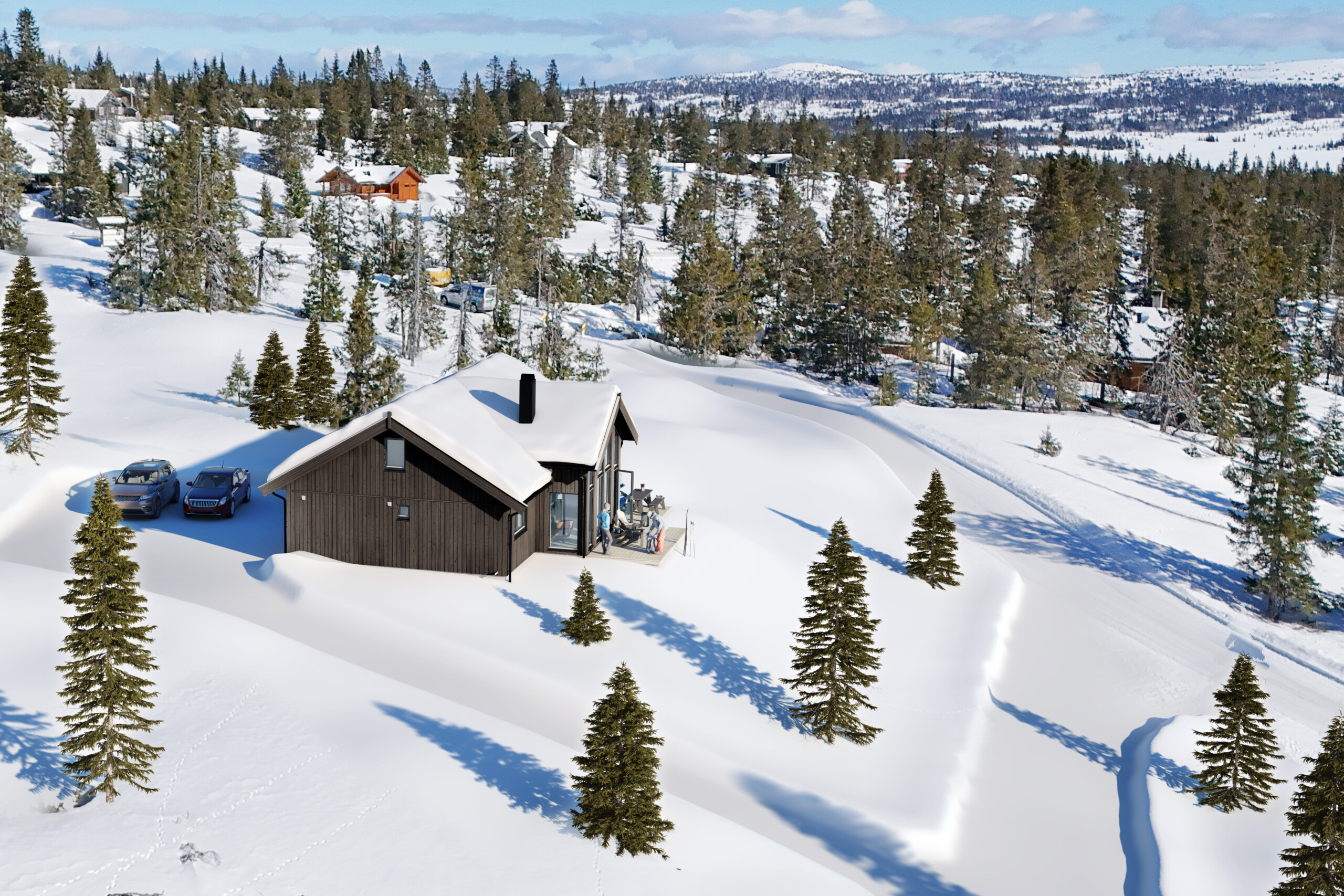 Hyttetomtene har svært gode solforhold og med skiløype rett utenfor døra.